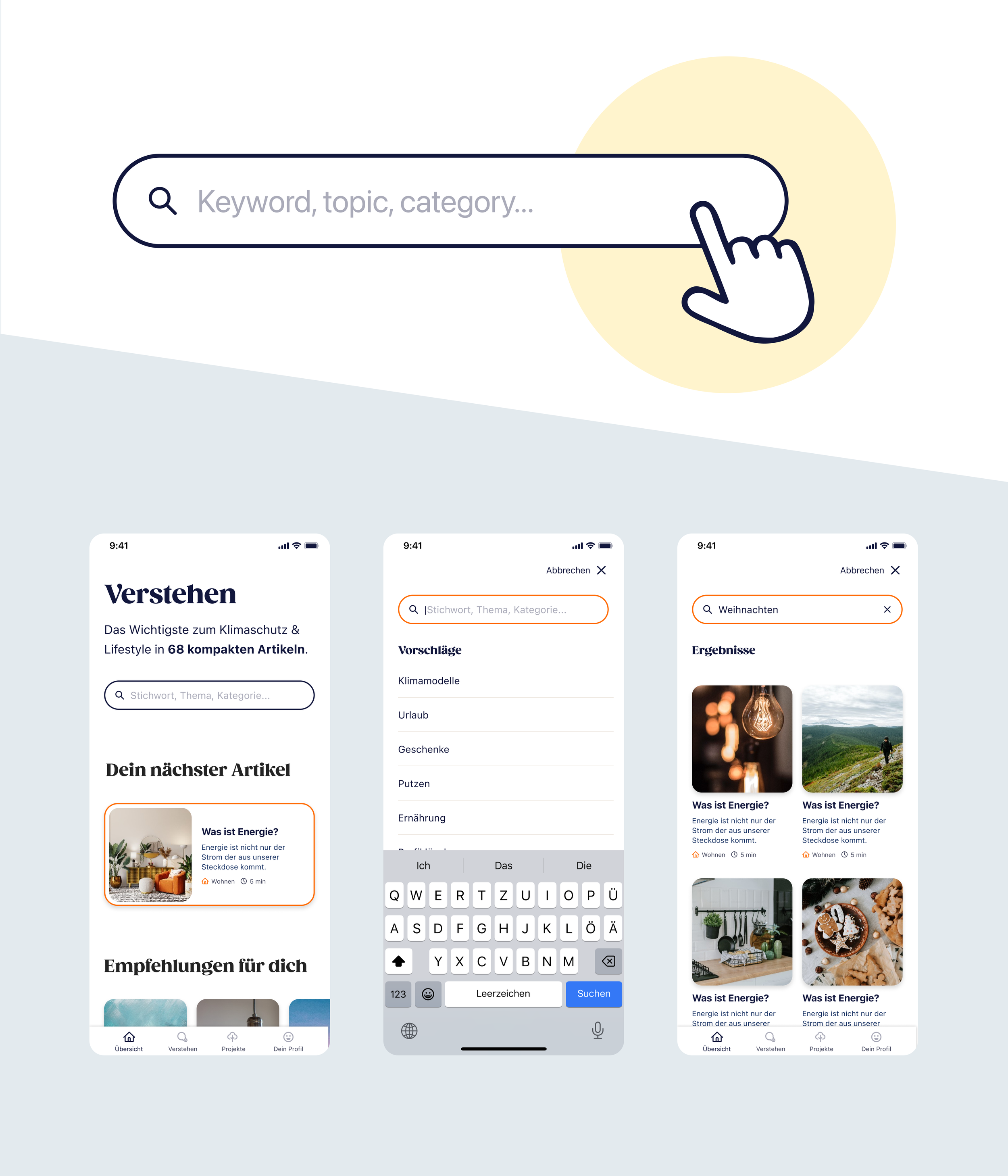OneClimate is a startup dedicated to helping users understand and measure their CO2 footprint while encouraging active participation in climate action. The app features a Knowledge section, designed to provide users with valuable information and articles on sustainability and climate change. However, the initial design of this section did not achieve the expected level of user engagement.